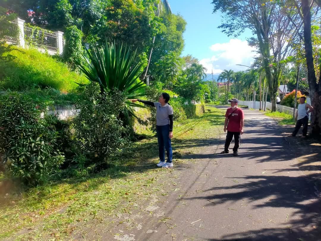“Hari Minggu Memantau kebersihan jalan sepanjang kompleks Rumah dinas. Memangkas rumput, ” tandas Karo Ani.