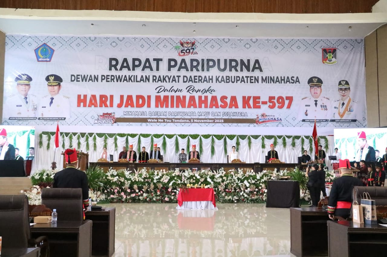 MINAHASA, Reportasemanado.com- Dewan Perwakilan Rakyat Daerah (DPRD) Kabupaten Minahasa, menggelar Rapat Paripurna, dalam rangka Hari Jadi Minahasa Ke-597, yang di laksanakan di Gedung Wale Ne Tou Tondano, Rabu (05/11).