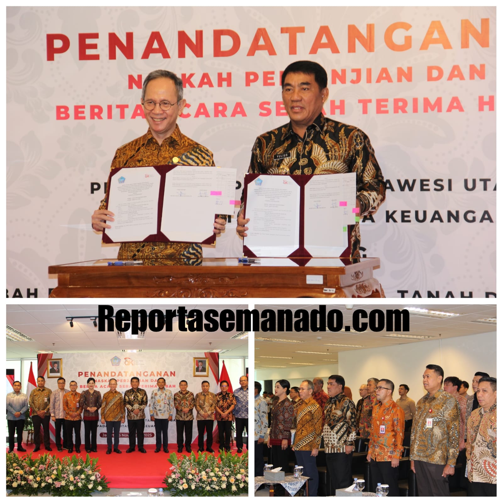 JAKARTA, Reportasemanado.com- Penandatanganan Naskah Perjanjian Hibah Daerah (NPHD) dan Berita Acara Serah Terima (BAST) untuk aset milik Pemprov Sulut yang diserahkan kepada OJK dilakukan Gubernur Sulut Mayjen TNI (Purn) Yulius Selvanus Komaling, berdasarkan Surat Keputusan Gubernur Sulawesi Utara Nomor 290 Tahun 2025 tanggal 25 September 2025.