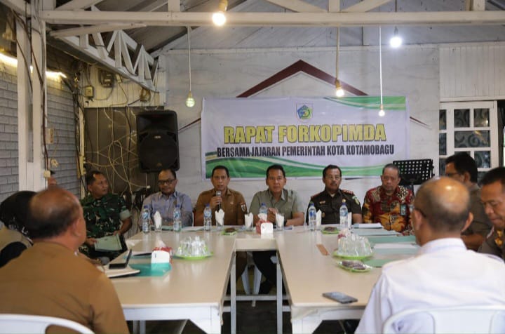 KOTAMOBAGU,RM— Wali Kota Kotamobagu, dr. Weny Gaib, Sp.M., memimpin langsung Rapat Forum Koordinasi Pimpinan Daerah (Forkopimda) bersama jajaran Pemerintah Kota Kotamobagu, Senin (8/12/2025), bertempat di D’Sabuah Cafe, Kelurahan Motoboi Kecil.