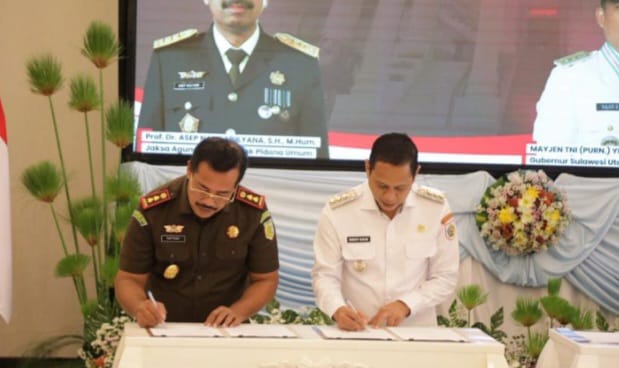 Penandatanganan ini turut dihadiri: Gubernur Sulawesi Utara, Mayjen TNI (Purn) Yulius Selvanus, S.E., Jampidum Kejaksaan Agung RI, diwakili Direktur A Dr. Hari Wibowo, S.H., M.H., Ketua DPRD Provinsi Sulut, dr. Fransiscus Silangen, Sp.B., Kbd., Kajati Sulut, Jacob Hendrik Pattipeilohy, S.H., M.H., Perwakilan Forkopimda Sulut, para bupati, wali kota, serta kepala kejaksaan negeri se–Sulawesi Utara.