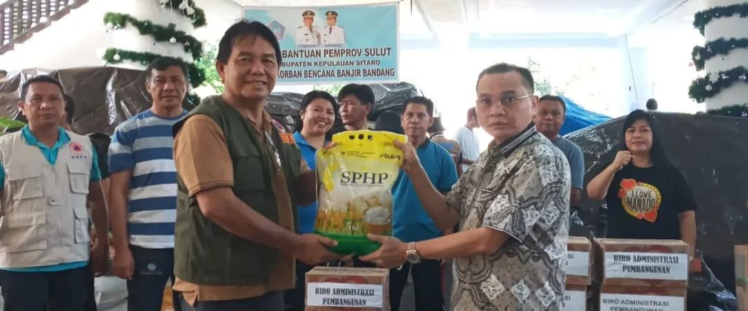 Reportasemanado.com – Kepala Biro Administrasi Pembangunan, Lukman Lapadengan, menyerahkan bantuan kemanusiaan untuk korban banjir bandang di Kepulauan Siau, Jumat 9 Januari 2026, di posko bantuan bencana.