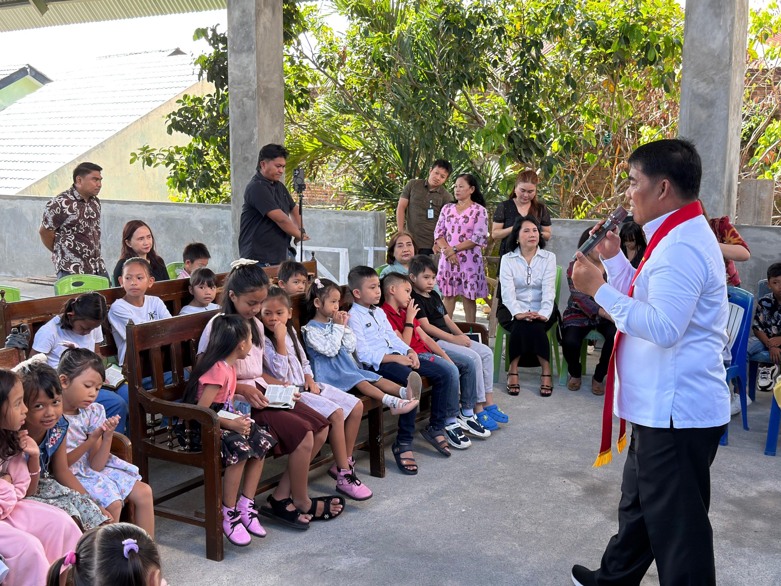 YSK hadir sebagai khadim bagi anak-anak sekolah minggu, dengan bahasa sederhana, senyum hangat, dan gestur penuh kasih. Ia menyampaikan pesan rohani yang mudah dipahami bocah-bocah kecil di hadapannya.